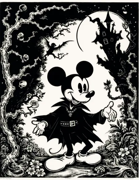 예시: lora:j0hanes_stylev3-step00000750:0.9 j0hanes_stylev2, 흑백 그림 of 미키 마우스가 공포의 성에 있는 모습, 미키 마우스가 뱀파이어로 표현됨,