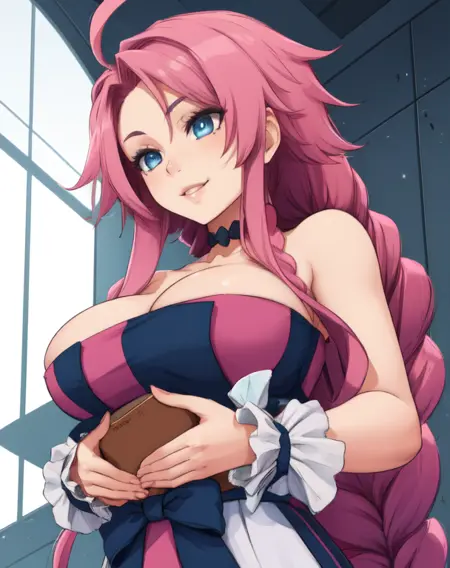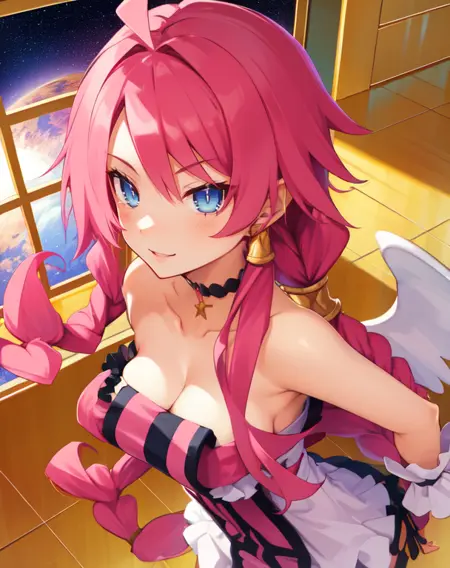 Artina, 긴 분홍색 머리, 땋은 머리, 머리 튜브, 파란 눈, 아호게