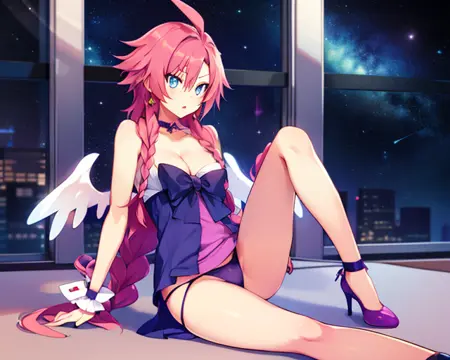 Artina,粉色长发,辫子,发管,蓝色眼睛,呆毛