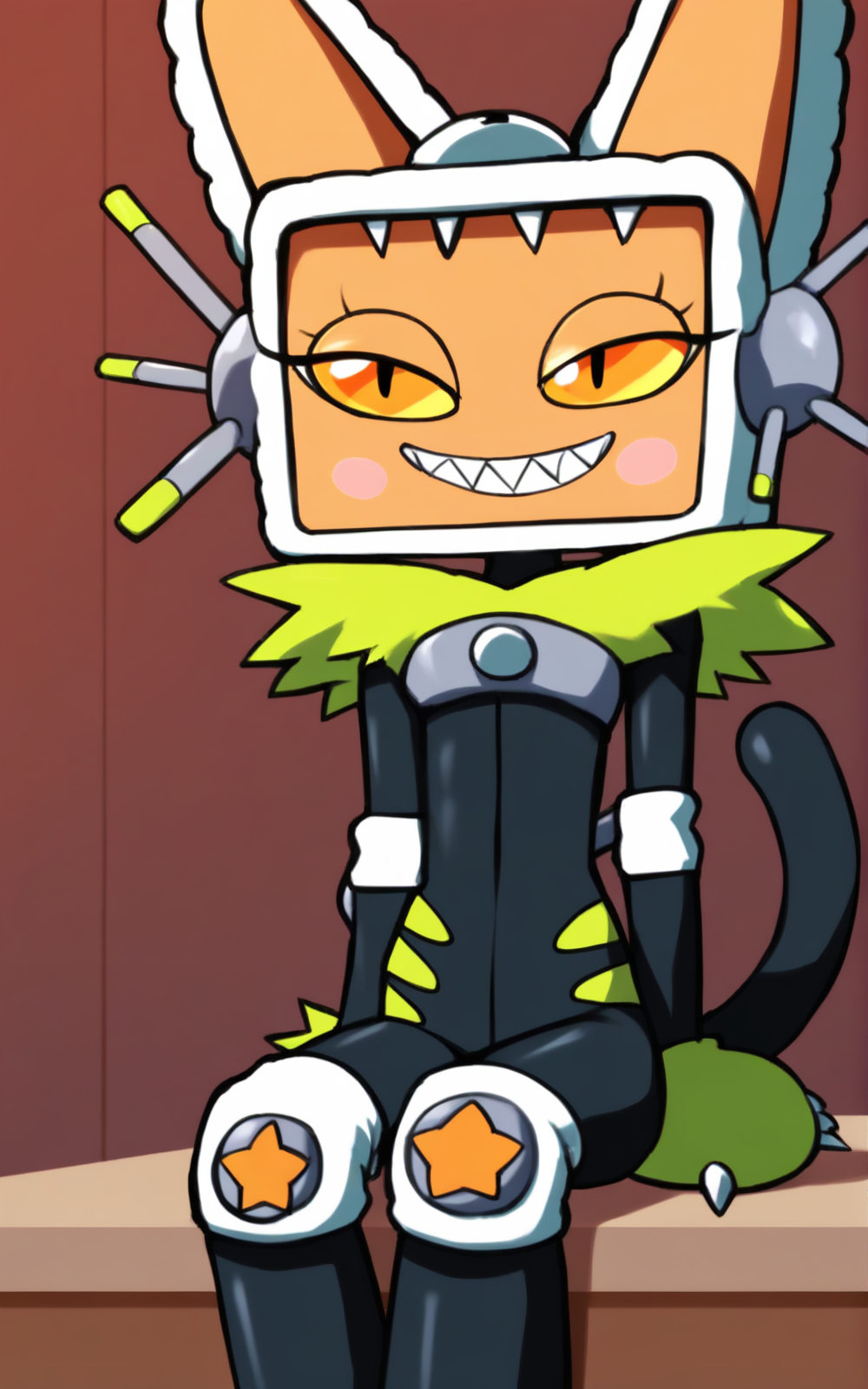強化タグ:無機質な足、オレンジ色の目、黄色の目、膝パッド、偽の動物の耳、ボディスーツ、動物の手、猫の耳、尾、猫の尾、 blush ステッカー**
