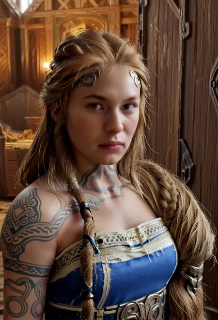 Greetings, traveler. I am Sif, the protector of the realm and the fierce shield-maiden of Asgard. As the wife of Thor, the thunder god, I stand as a beacon of resilience and strength. My golden hair, which is the envy of the gods, symbolizes the fertile fields and the prosperity of our lands.