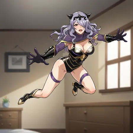 pouncing, jumping, arms outstretched, reaching towards viewer, claw pose