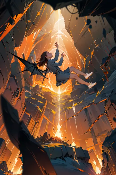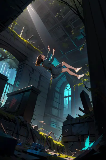 Recommended positive prompt words: falling,(from below:1.2),falling_blur,depth of field,floating,focused,