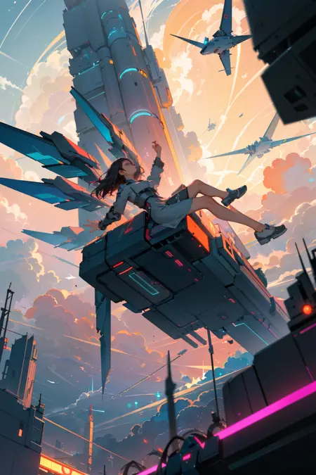 推奨ポジティブプロンプト:falling,(from below:1.2),falling_blur,depth of field,floating,focused、その他ご希望の内容を自由に追加してください。さまざまな組み合わせを試してみてください。