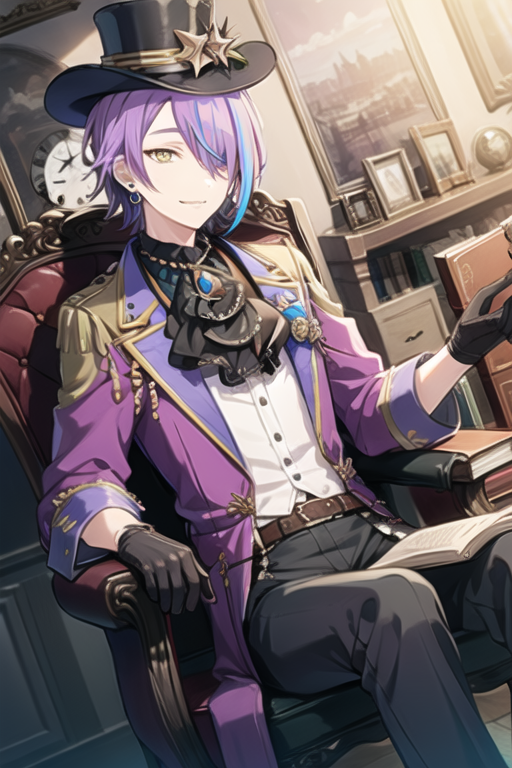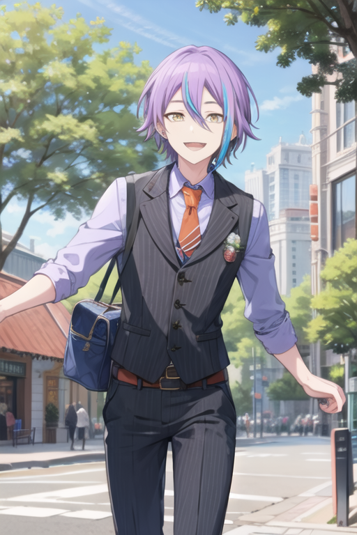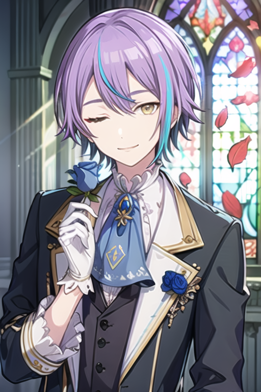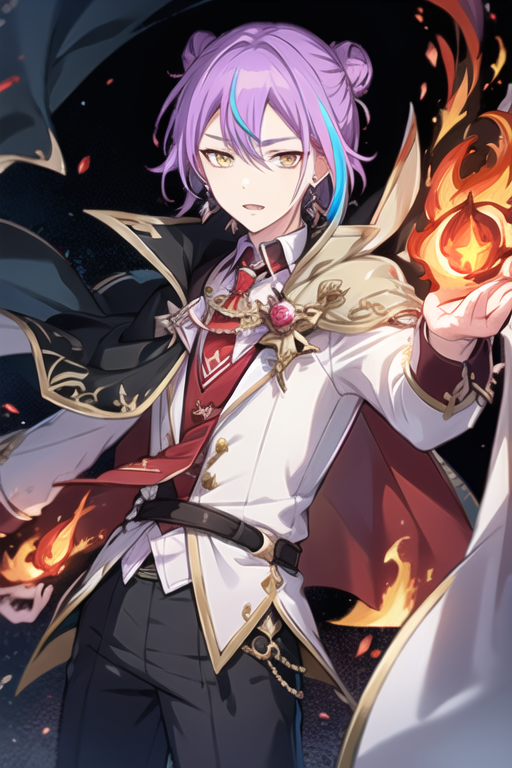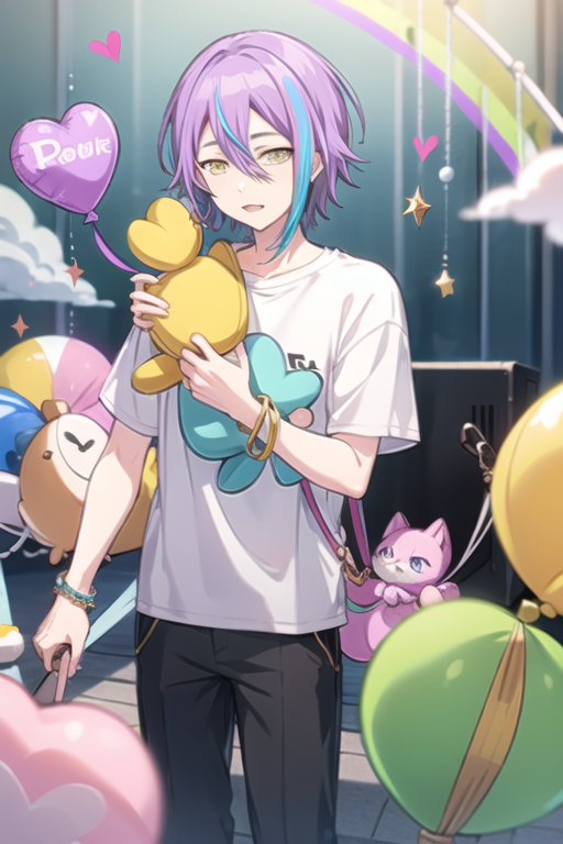 1boy, solo, purple hair, aqua hair, streaked hair,yellow eyes