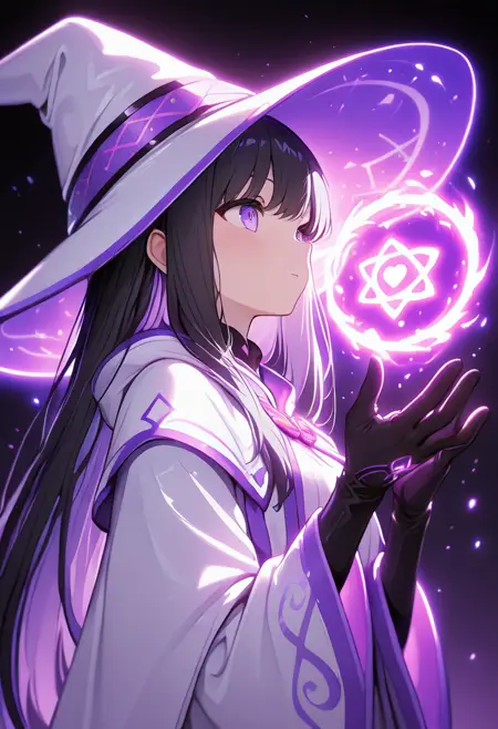 "score_9, score_8_up, score_7_up, upscale 2x, (青いローブとフード、猫の耳をつけたアニメ風の女性魔法使いが手を掲げ、星のシンボルが光る「spell bind」の呪文を唱えている。作品は鮮やかな色使いと、アニメ風の可愛いキャラクターで構成されています:1.2)"