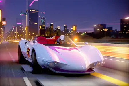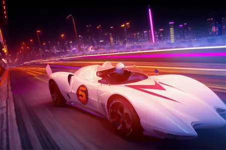 버튼 E, 이브닝 아이 또는 특수 조명 (イブニングアイ, Ibuningu Ai, Evening Eye): 일반 헤드라이트보다 훨씬 멀리, 선명하게 볼 수 있는 특수 조명 장치로, 단독 또는 연동하여 작동한다. 스피드의 헬멧에 장착된 “나이트 쉐이드”와 함께 사용하면 적외선 조명을 통해 시야가 향상된다. 이후 버튼 E는 차량 아래에서 미니 날개가 튀어나와 스피드가 긴 점프를 할 때 도움을 주도록 수정되었다(팝스는 카 아크로바틱 팀에서 아이디어를 얻었다).