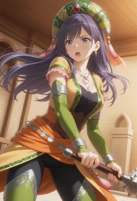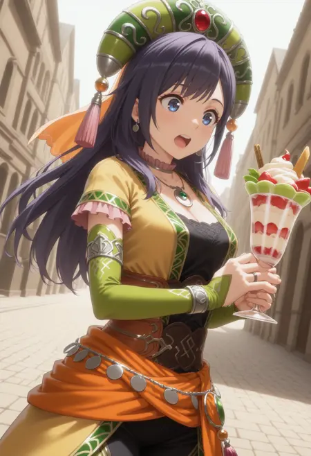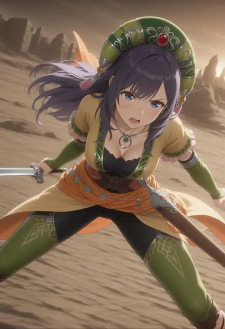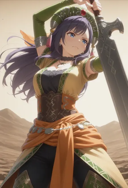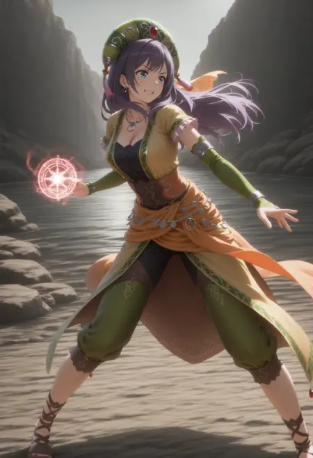 트리거만으로도 충분히 재현 가능하지만, 소피아를 생성할 때는 long hair, purple hair, blue eyes, jewelry, cleavage, earrings, bridal gauntlets, necklace, medium breasts, pants, collarbone, green headwear, choker 등에서 원하는 요소를 추가해 주세요. 아가타나 모니카 등 다른 캐릭터의 장식품이나 색상이 다른 경우, 관련 색상을 명시해 주세요.