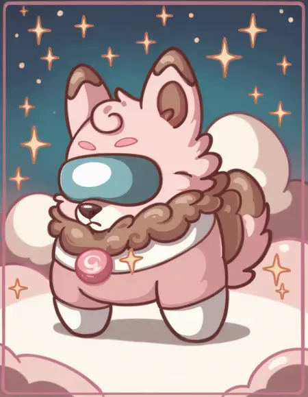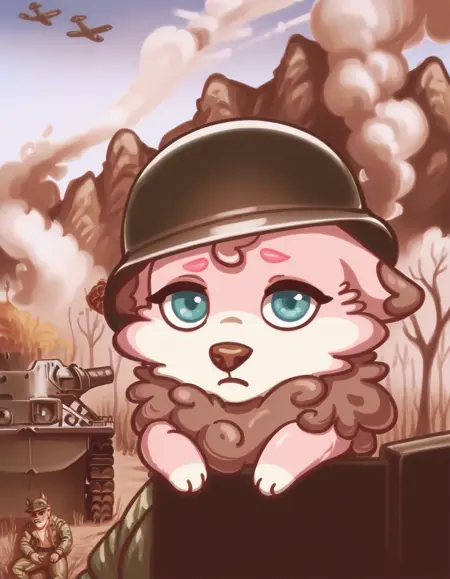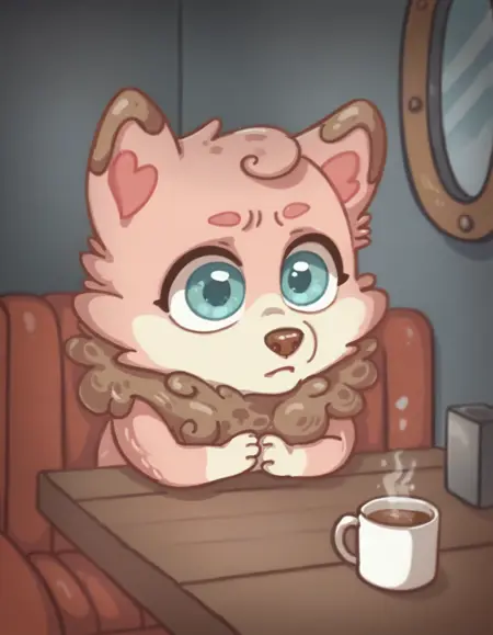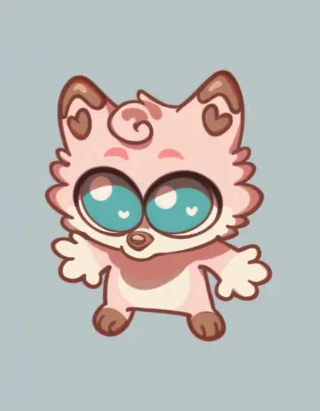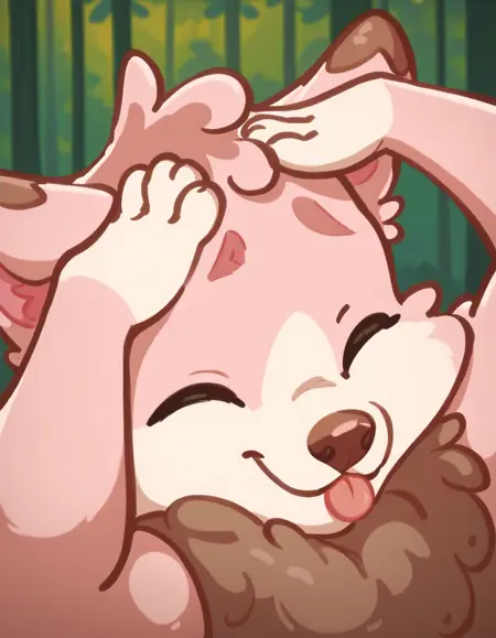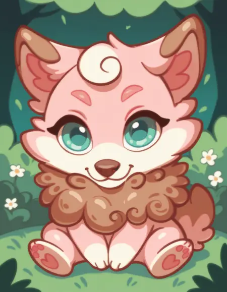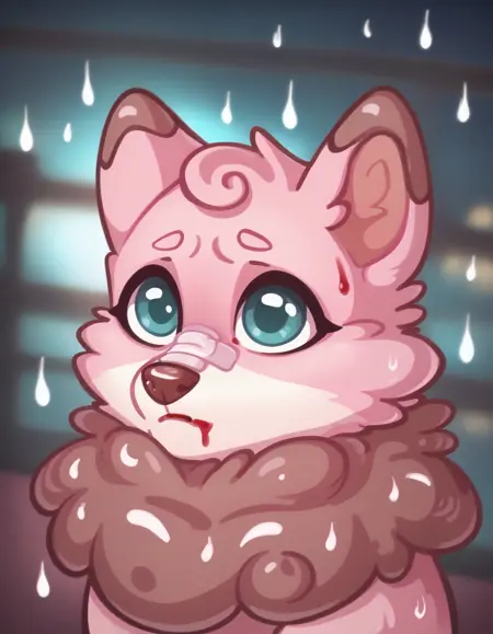 Promt: 4erry, teal eyes, pink fur, white face, brown nose, pink eyebrow.