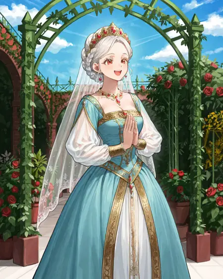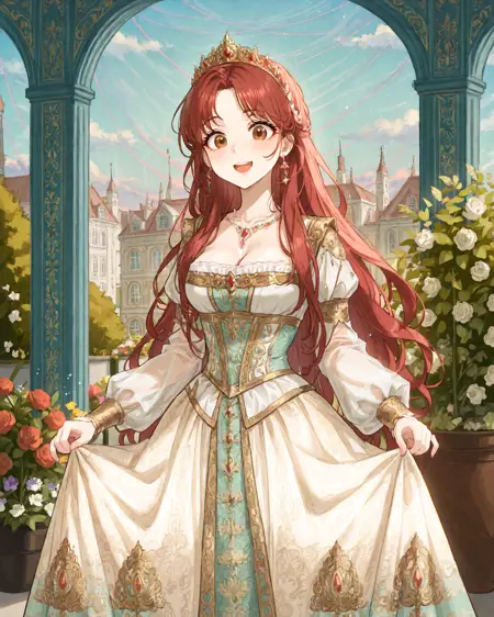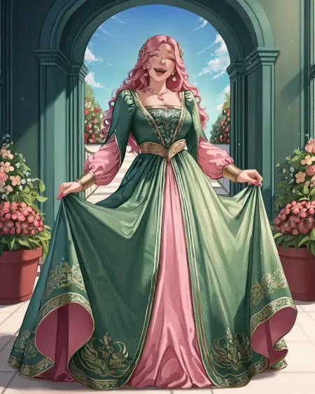 Pony version is up now, the dresses are definitely a little more "specific". It's great at the specific sort of braided updo you see with this time period, and it loves to do crowns. If you don't want a crown, you'll likely have to stick it in negatives. A little less "character" imo than the 1.5, but a boost in general quality for sure. If you lower the weight, you might get the best of both worlds? I still suck at Pony, so please show me cool things you make that I couldn't figure out LOL.