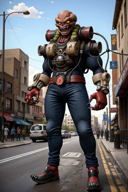 これは怪人風のLoRaモデルで、様々な特撮風のキャラクターを生成することができます。簡単に使うには、「1kaijin」を使うだけです。LoRaのトレーニング素材は完全に2D手描き(非常に平坦なもの)なので、「realistic」と「photorealistic」を追加して3D感を増やすようにしてください。また、これにより、「Hi.Res」を必ず使用する必要があります。このLoRaは、一部の2Dモデルでもうまく機能する可能性があると思いますが、試していないので、あなたに任せます。