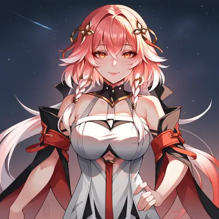 Changli, pink hair, white hair, twin braids, low ponytail,