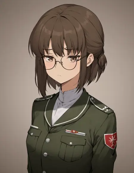 주리, 1소녀, 안경, 갈색 머리, 군복.