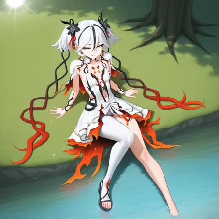 免責事項: AIはこのキャラクタータグを使っても、この衣装を正しくトレーニングできないのが本当に嫌いです。脚に花?いやいや。WuWaのデフォルト衣装(Jinhsiを除く)がだんだん嫌になってきました。だから、LoRAのバナーがデフォルト衣装でない理由をご存知でしたか?それが答えです。