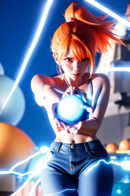 请自由调整提示词以增强效果,例如添加((能量球))或(电流)等标签强化视觉表现。建议在提示词中加入“夜景”元素,使视觉效果更突出。
