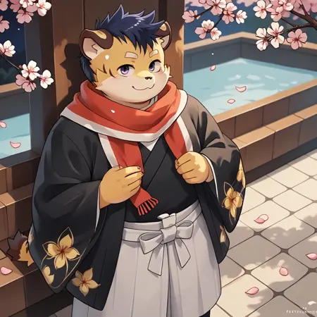 tkai, 1boy, tiger boy, chubby, young, adult:1.2, solo,