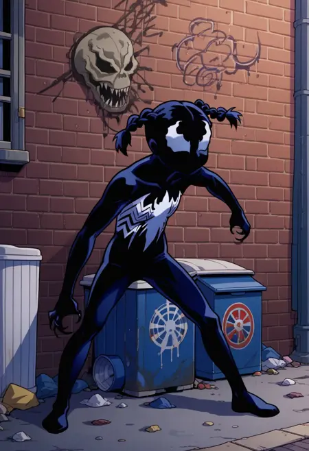 만화에서 가져온 77장의 이미지(복장: 52장 + 베놈 버전: 9장 + 일반 복장: 16장)로 제작되었습니다. 일반적으로 52장은 과도하지만, LoRA는 그녀의 복장에 특유하고 구체적인 세부 사항을 잘 학습하지 못하는 경향이 있어, LoRA가 최선의 기회를 가질 수 있도록 확실히 하고 싶었습니다(또한 만화 캐릭터에는 과도함이 좋습니다). “별(기호)”를 추가한 것이 로고를 더 명확하게 만든 것 같습니다(대부분 에포크 3까지 나타납니다).