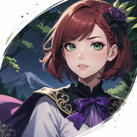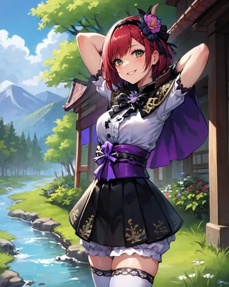 <lora:GraciaSW3-08:0.8>, Gracia Hosokawa, red hair, short hair, (large hair ornament), green eyes, small breasts,
