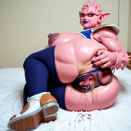 dodoria, pink skin, alien, spiky skin, purple lips, purple eye liners
