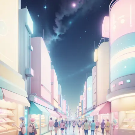 scifi, pastel colors,"를 추가하세요.스타일은 프롬프트에 포함된 파인튜닝 또는 아티스트에 따라 달라질 수 있습니다.