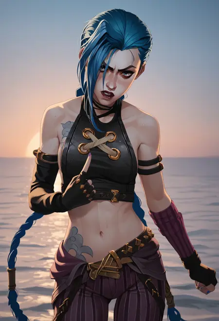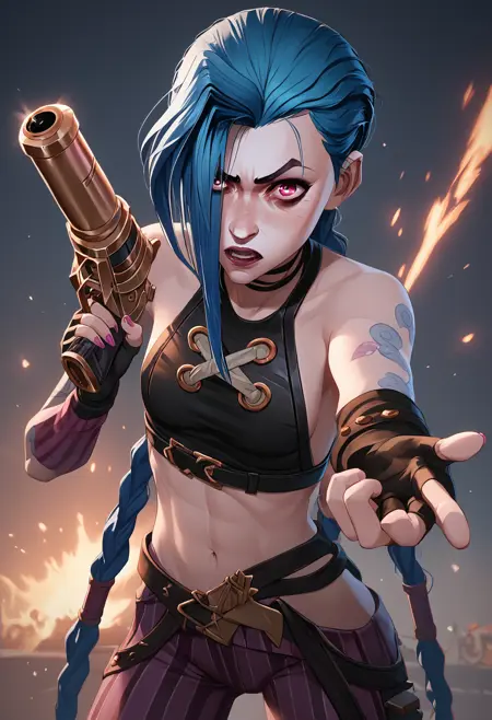 Jinx, also known as Powder, is a lead character appearing in Arcane and a character in Riot Games League of Legends.