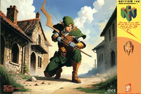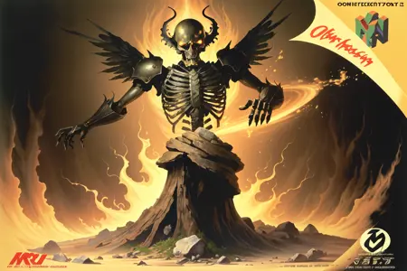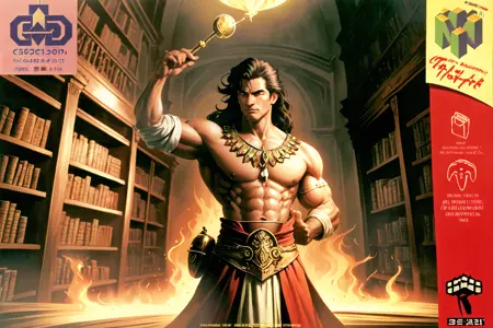 박스 아트, 레트로 아트스타일, 로고, 영어 텍스트, 저작권 명칭