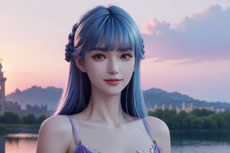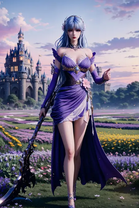 - 服装: detached sleeves,detached collar,gorgeous purple long dress,gorgeous high heels