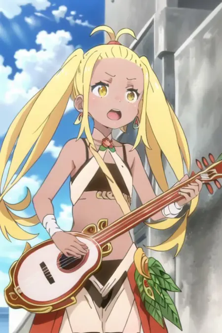 :liliana masquerade, 长发, 金发, 深色皮肤, 深色皮肤女性, 双马尾, 黄色眼睛