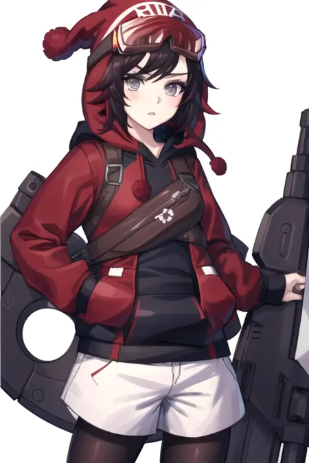 | 학습된 단어 | RubyR0seQueendom, 1girl, solo, short hair, black hair, long sleeves, red jacket, black pantyhose, red hair, streaked hair, white shorts, hood, grey eyes, hoodie, hood down, goggles, red headwear, red beanie, legwear under shorts, fanny pack, red hoodie, ruby rose복사됨! |