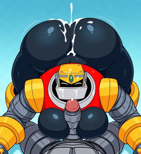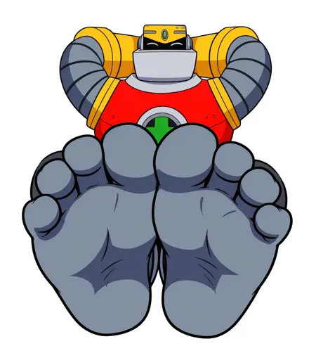 gut5m4nexe, 로봇, 입이 없는, 큰 턱, 초록색 눈