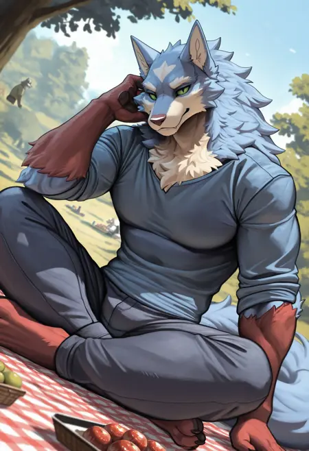 Pony: score_9, score_8_up, score_7_up, high quality, hires, fel_ciawwmas, furry, solo, 1boy, muscular, bara, green eyes, ...your tags...