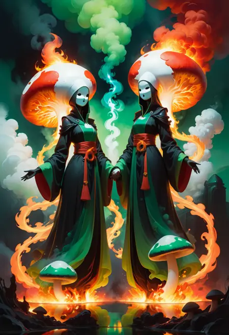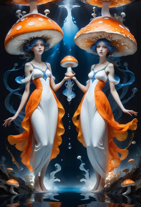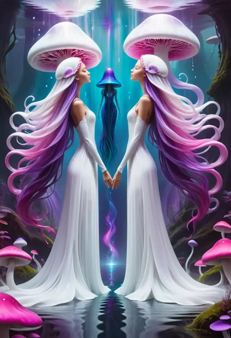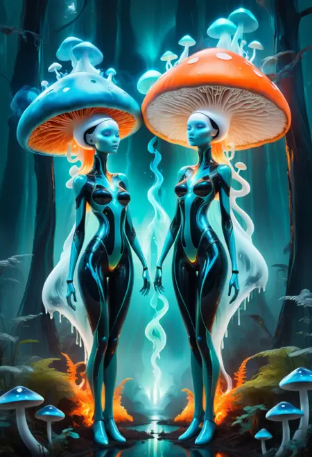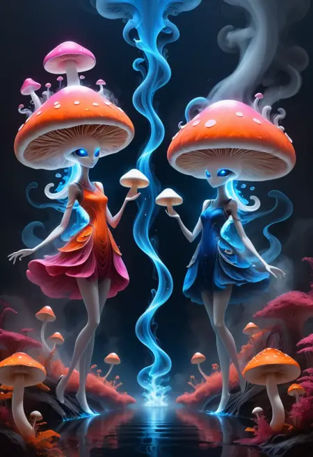 Mushroom Fantasy Elements: With vibrant mushroom-like headdresses and glowing forest environments, this LoRA can add natural, organic elements to enhance the surreal quality of your images.