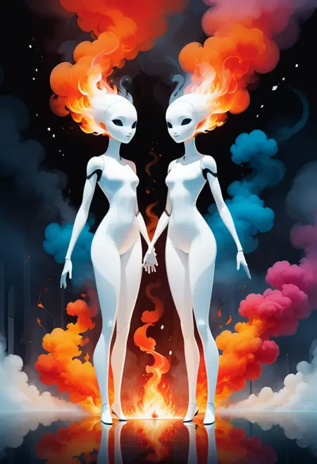 Dual Figures and Symmetry: This LoRA excels in generating symmetrical compositions, often featuring paired alien figures, which evokes a sense of balance and harmony in each piece.