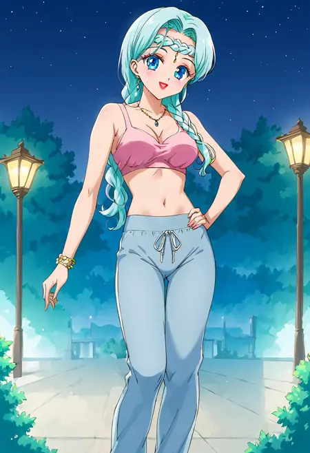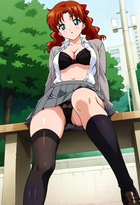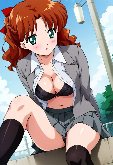 | Trained Words | (outfit 01, skirt, pleated skirt, gray skirt, knee-high stockings, gray sweater, white shirt, shirt with tie, cleavage, black bra, socks, black socks, thigh-high stockings, open clothes)Copied! (outfit 02, latex miniskirt, black skirt, pantyhose, white shirt, turtleneck, long sleeves, sleeves beyond the wrists, boots, black shoes)Copied! (outfit 03, stewardess, blue dress, short dress, shoulder pads, clothing cutout, neckline cutout, gloves, garrison cap, white boots)Copied! (outfit 05, sweatpants, silver pants, pink croptop, croptop with tie, belly button, jewelry, abdomen, bracelet)Copied! (outfit 06, denim miniskirt, short skirt, blue skirt, white t-shirt, red shirt, button down shirt, open shirt, sandals, platform shoes)Copied! (outfit 04, jumpsuit, latex jumpsuit, red jumpsuit, turtleneck, long sleeves, black shoes)Copied! |