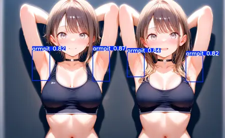 bbox版とsegmentation版どちらも画像が暗かったり、既に腋の書き込みが多いと上手く検出しない傾向があります。