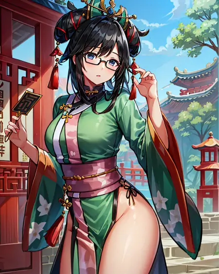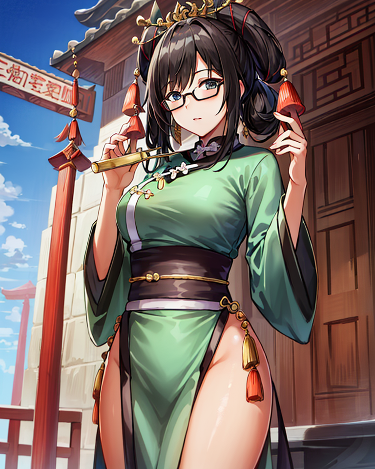 ruixiangms,glasses, hair ornament, chinese clothes, black hair