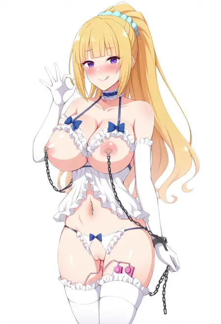 白色手套,肘部手套,蝴蝶结,蓝色蝴蝶结,荷叶边,项圈,荷叶边项圈,蓝色项圈,