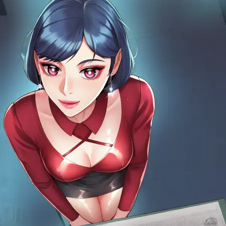 3. ((美丽的露肩长袖红黑格子上衣,巨大乳沟,淫秽乳沟,黑色铅笔裙,水晶耳环,))