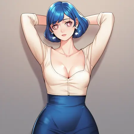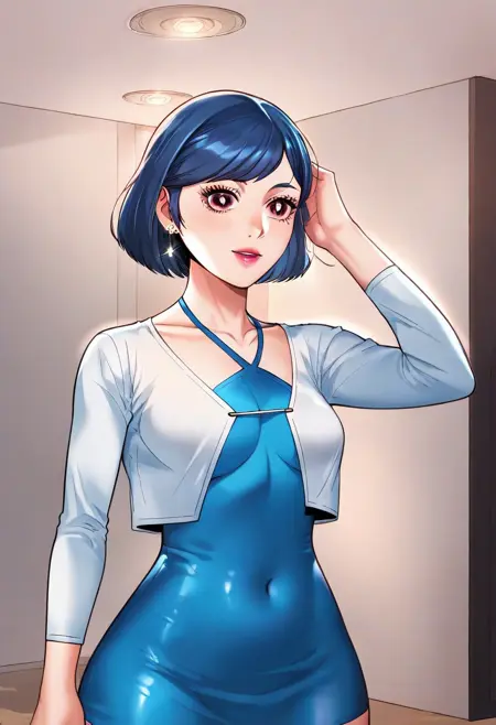 (( lora:kwak_chae-young:1 , kwak_chae-young, 纤细腰身,宽臀,美丽的肌肤,锐利的粉红色眼睛,清澈的眼睛,明亮的瞳孔,美丽的眼睛,美丽的蓝色头发,美丽的中等波波头,刘海,小乳房,自然美,超凡美丽的女性,有魅力的女性,超级性感的女性,欲望的身体,带有诱惑淫秽身材的性感女性,性感的身材,丰满的身材,性感美,无穿孔,无 piercing,))