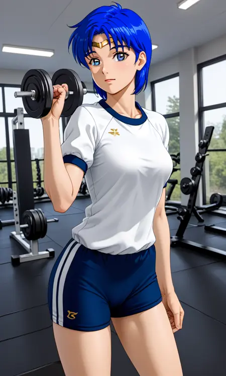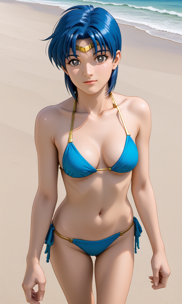 kyratierney, 1girl, grey eyes, blue hair, short hair, gold circlet,
