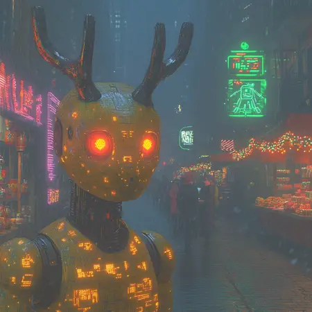 역동적 구성 요소: 환경 요소: 배경에 “떠다니는 입자”, “디지털 비”, “데이터 흐름”, “홀로그램 텍스트” 등을 추가하여 움직임과 미래적 분위기를 더하세요. 캐릭터 강화: 캐릭터에는 “빛나는 눈”, “금속질 질감”, “바이오패닉 특징”, “합성 피부”를 포함시켜 사이버-드림 환경에서 깊이와 현실감을 더하세요.