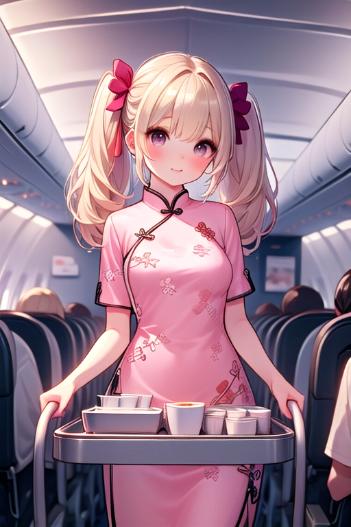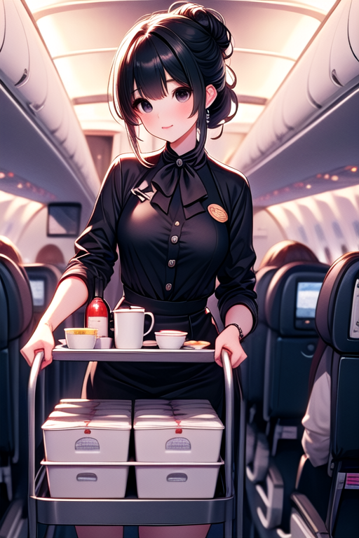 注:頭部が時々小さめになることがありますが、通常は正常な比率です。慣れていない場合は「petite」を追加して改善できます。食事の内容は変更可能ですが、プロンプトの重みを増やす必要があります。カートを女の子の後ろに置きたい場合は「ass focus」を試してください。航空機の乱気流を表現したい場合は、「dutch angle, open mouth, frown」を追加してください(SD 1.5)。