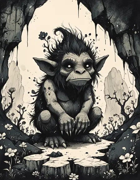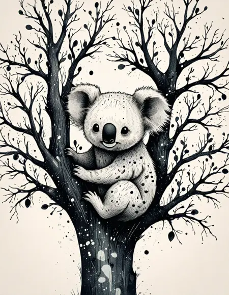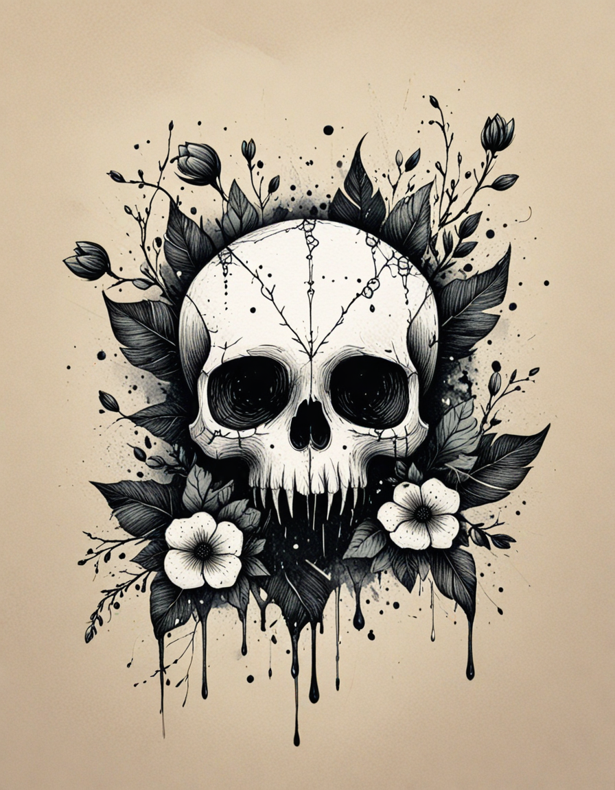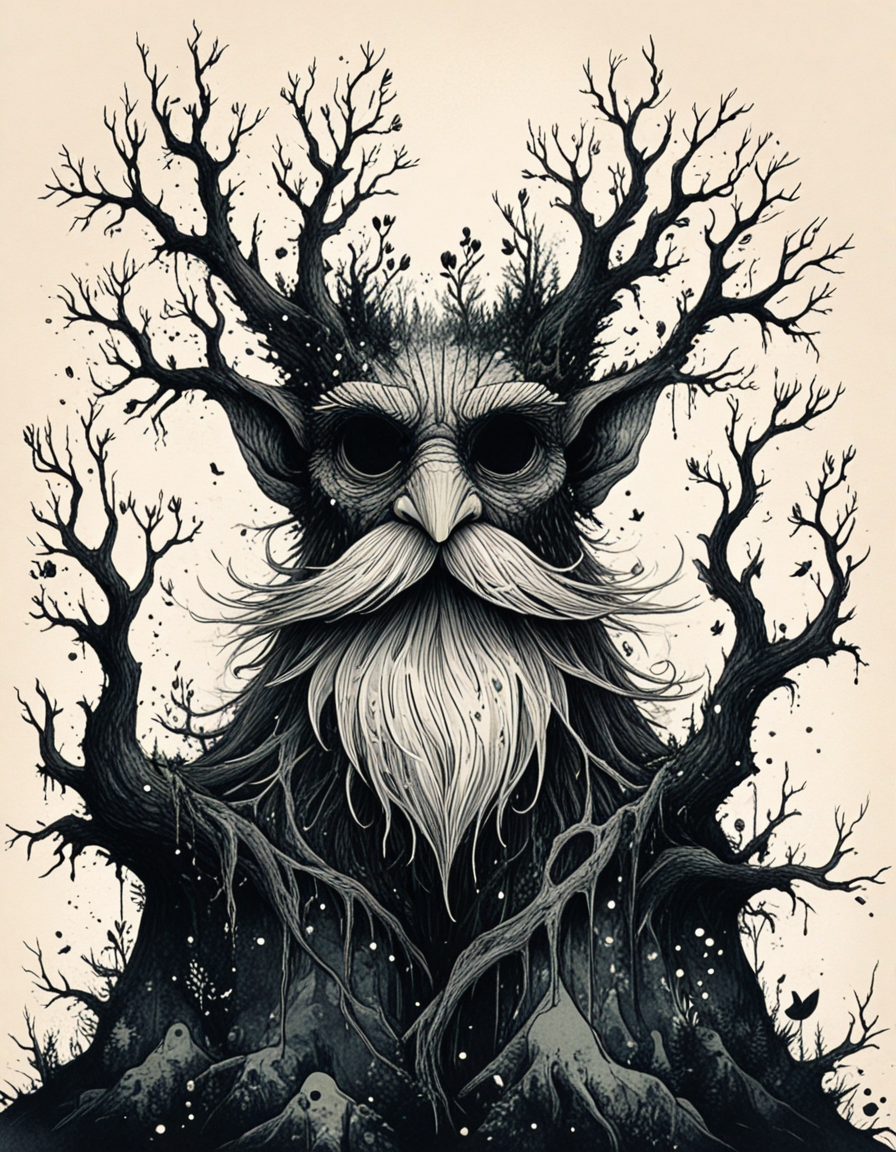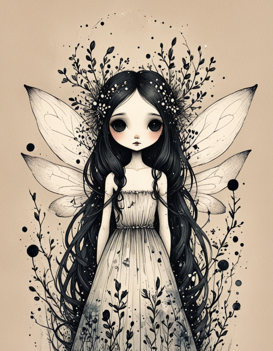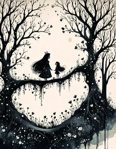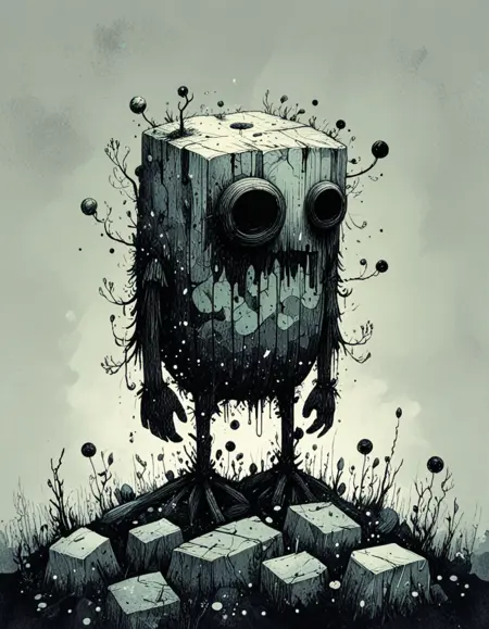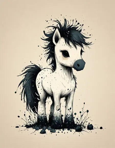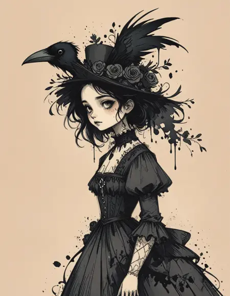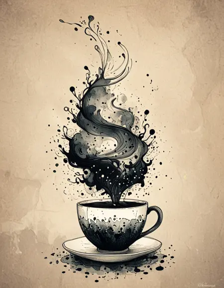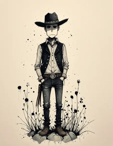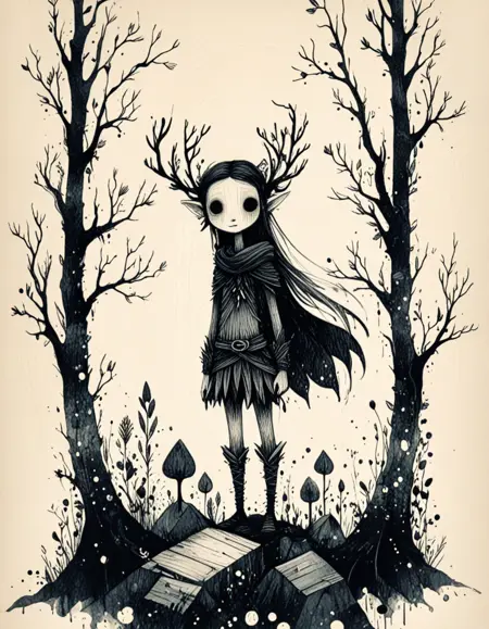 一种带有墨滴和墨点的水墨插画风格,偏向于浅色背景上的单色卡通画。在触发词中包含“水墨画”有助于更充分地呈现这种风格。