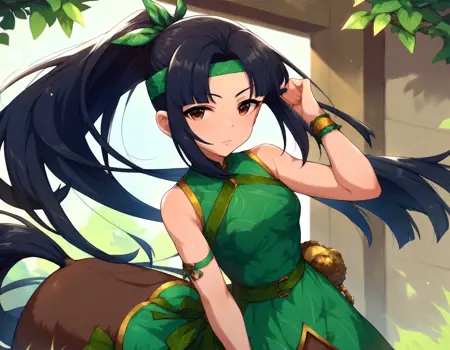 黒髪、分け目のある前髪、横髪、茶色の瞳