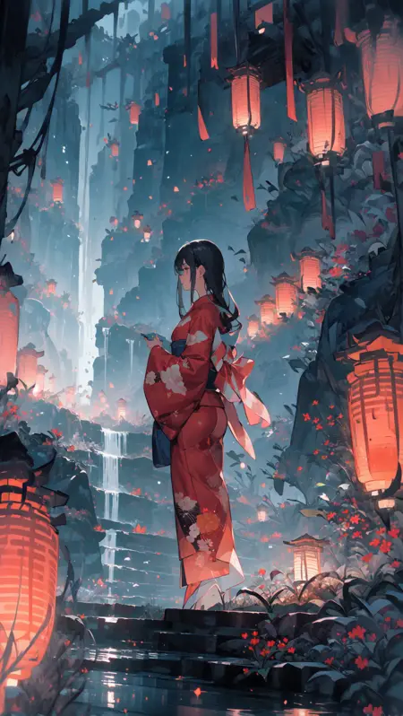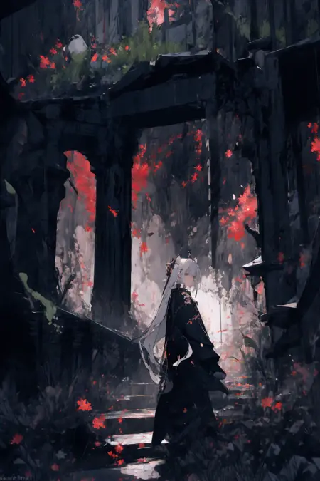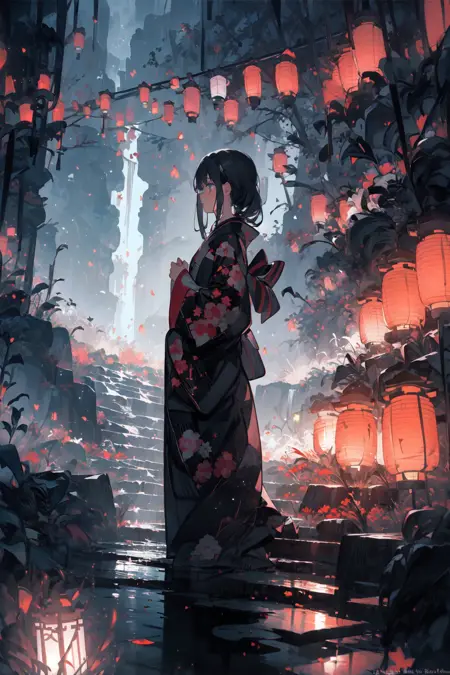 이 모델은 MJ로 생성된 이미지들을 학습 데이터로 사용하여, 예시 이미지와 같은 분위기를 안정적으로 생성할 수 있는 모델을 훈련하는 것을 목표로 했습니다. 이 라오라는 제한이 크며, 기본적으로 이 예시와 같은 상향 시점의 세로형 이미지를 생성하는 데 사용됩니다. 다른 태그를 사용하면 효과가 거의 나타나지 않습니다. 이미지 크기는 512*768을 권장하며, 샘플링 방식은 dpm++SDE karras, 스텝 수는 32, CFG는 7로 설정해 주세요. 고해상도 재생성 기능을 반드시 사용하고, 재생성 방식으로는 RE-ESRGAN 4X를 권장하며, 재생성 강도는 0.5로 설정해 주세요. 제가 사용한 예시 이미지의 태그 기본 형식은 다음과 같습니다: