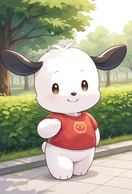 提示词:pochacco,兽人,动物耳朵,红衬衫,白毛,Q版,