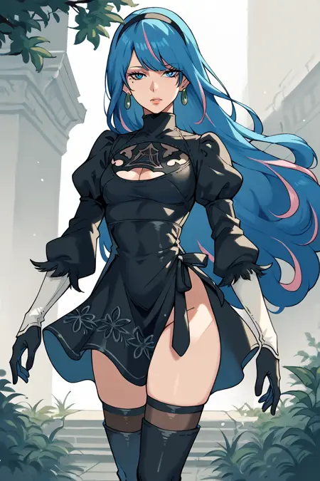 推荐权重:0.8。默认外观为她首次登场时的样子,非常直接,据我所知不会出现问题。以下是标签: