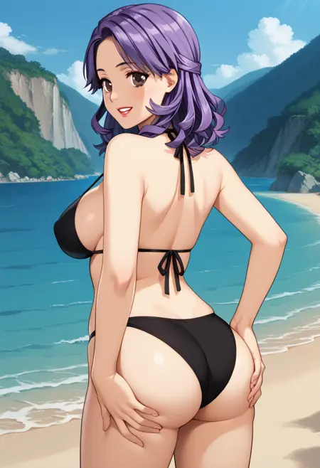 如果生成背面视角时发型发生变化,请在提示中添加 curly hair。