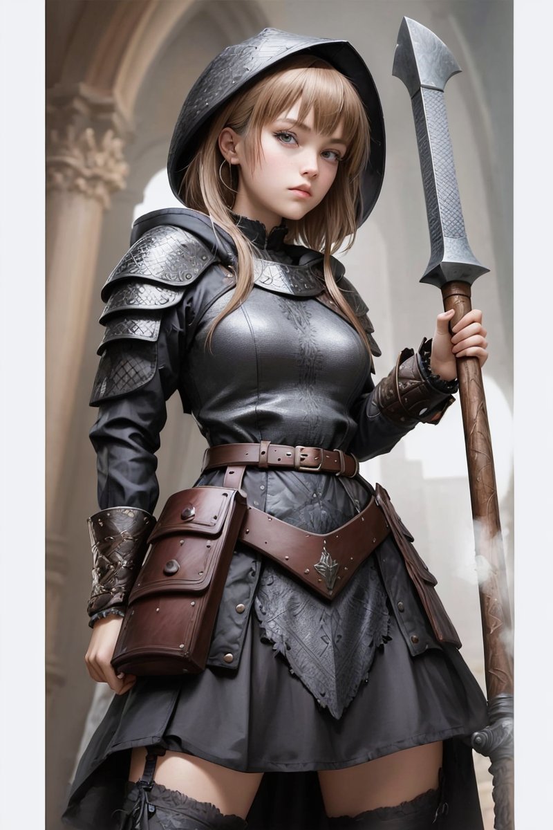 武器を持っている、斧を持っている、バトルアックス、斧の長い柄を持っている、戦闘姿勢、
