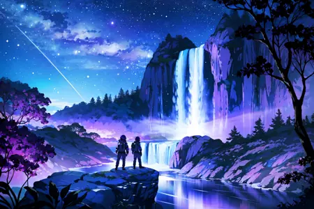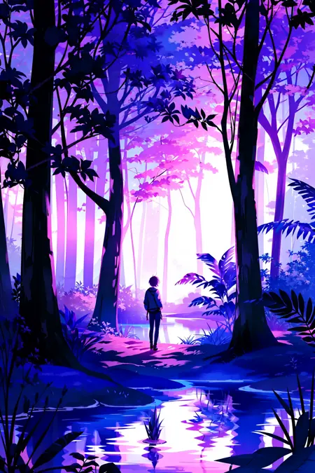 该LoRA训练于大量特定风格的数字绘制风景,不确定是否适用于人物,你可以尝试一下。